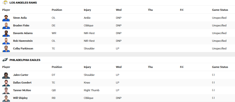 Mit insgesamt erst zugelassenen 517 Yards in den ersten beiden Spielen ist man ganz oben mit dabei und mit gerade einmal 14 Punkte pro Game erlaubten Punkten (Ligabestwert). Die Rams Defense gehört aktuell zu einer der komplettesten der Liga und beweist das auch. Mit den Eagles kommt jetzt natürlich ein anderes Kaliber auf uns zu, allerdings ist diese noch nicht so richtig in der Saison angekommen. Mit gerade einmal 518 Total Yards hängen sie weit hinter den Erwartungen zurück. Allerdings muss man ihnen zu gute halten und wie auch Jalen Hurts zu Chiefs DT Chris Jones sagte: "We won the fucking game". Stats sagen eben nicht alles aus und am Ende zählt nur der Sieg.