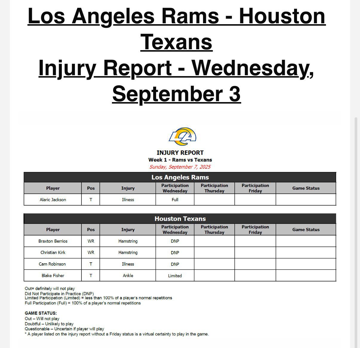 Injury Report