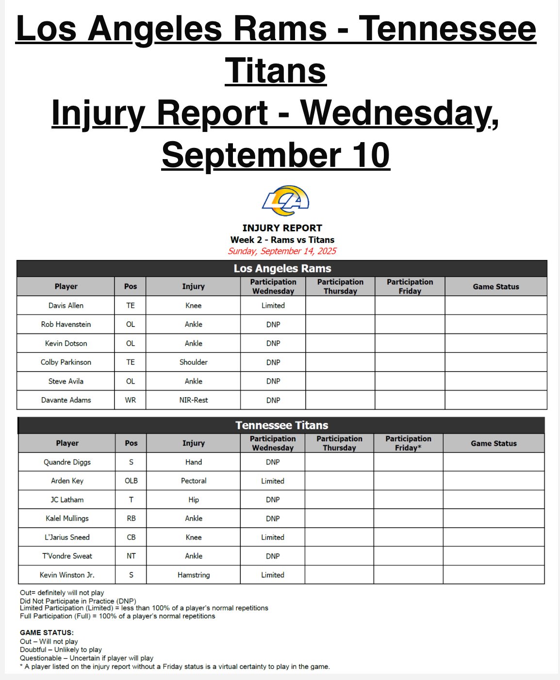 Injury Report