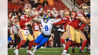 Tja, wo soll ich da anfangen. Sam Darnold wurde bei 54%!!! seiner Passing Snaps unter Druck gesetzt. Insgesamt erzielte die D-Line der Rams 43! Pressures, 31 Hurries und 9 Sacks, letzteres ist sogar Playoff Rekord. Hier einzelne Spieler hervorzuheben wird schwierig, da alle D-Liner überragend waren. Zudem wurde nur bei ca. 15% der Plays geblitzed, was der Defense zusätzliche Flexibilität in Coverage gab. Die Jungs um Verse und Co. haben eindrucksvoll gezeigt, dass sie zu den Besten der NFL gehören und ein absolutes A-Game abgeliefert.