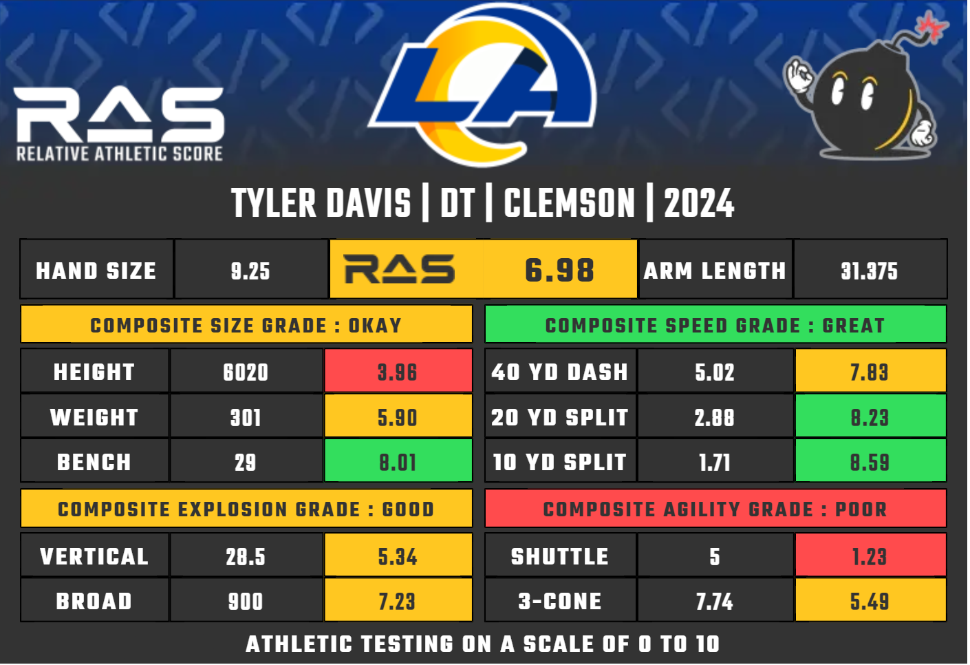 "Another one". Der nächste D-Line Spieler für die Rams. Er trägt den Namen Tyler Davis und spielte seine gesamte Collegekarriere bei den Clemson Tigers. Fünf Jahre und unzählige Snaps später haben ihn die Rams in der sechsten Runde ausgewählt. Als bisher einziger Defender in der Clemson Football Geschichte wurde er in vier All-ACC-Teams ausgewählt. Fünf Jahre als Stammspieler in der Clemson D-Line machten ihn zu einem vielseitigen Defender, der sowohl als Defensive Tackle als auch Nose Tackle eingesetzt wurde.